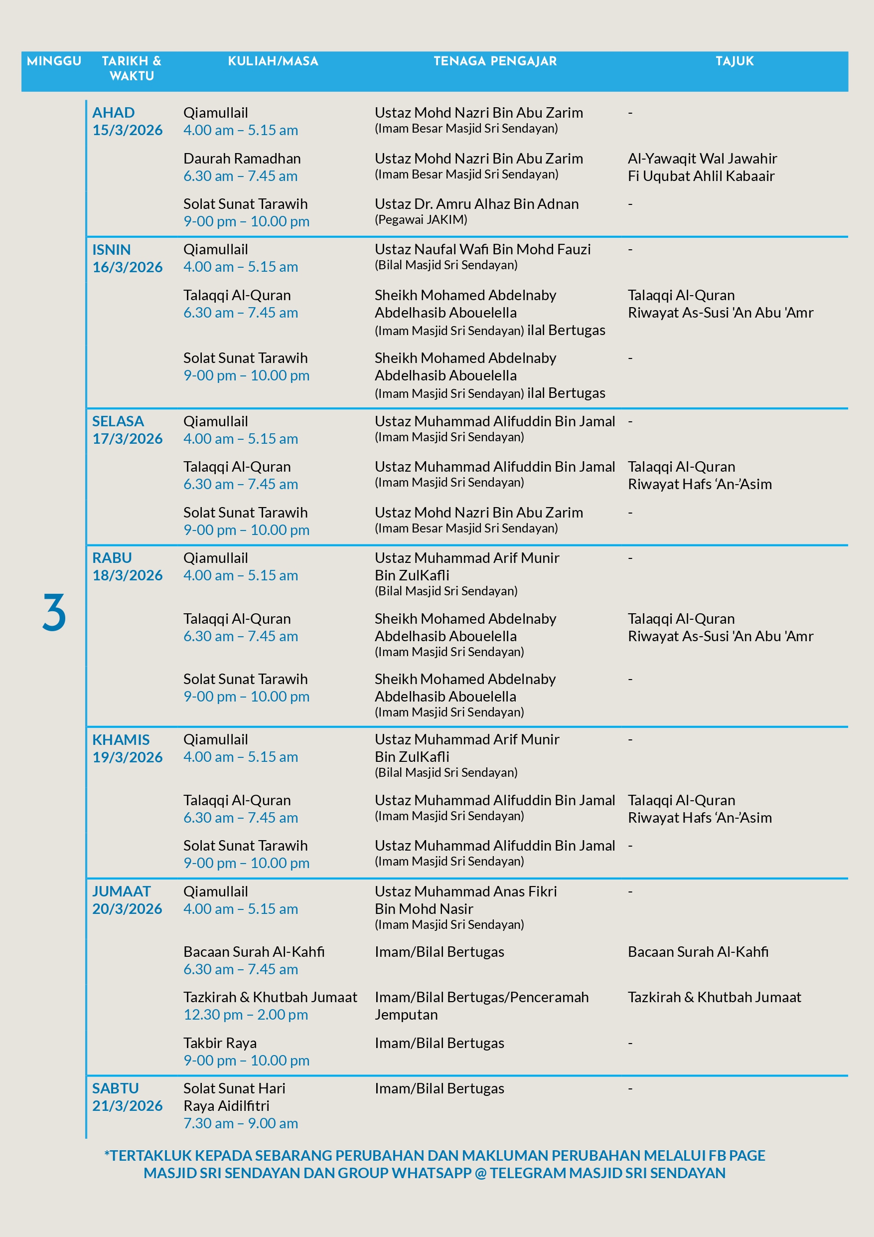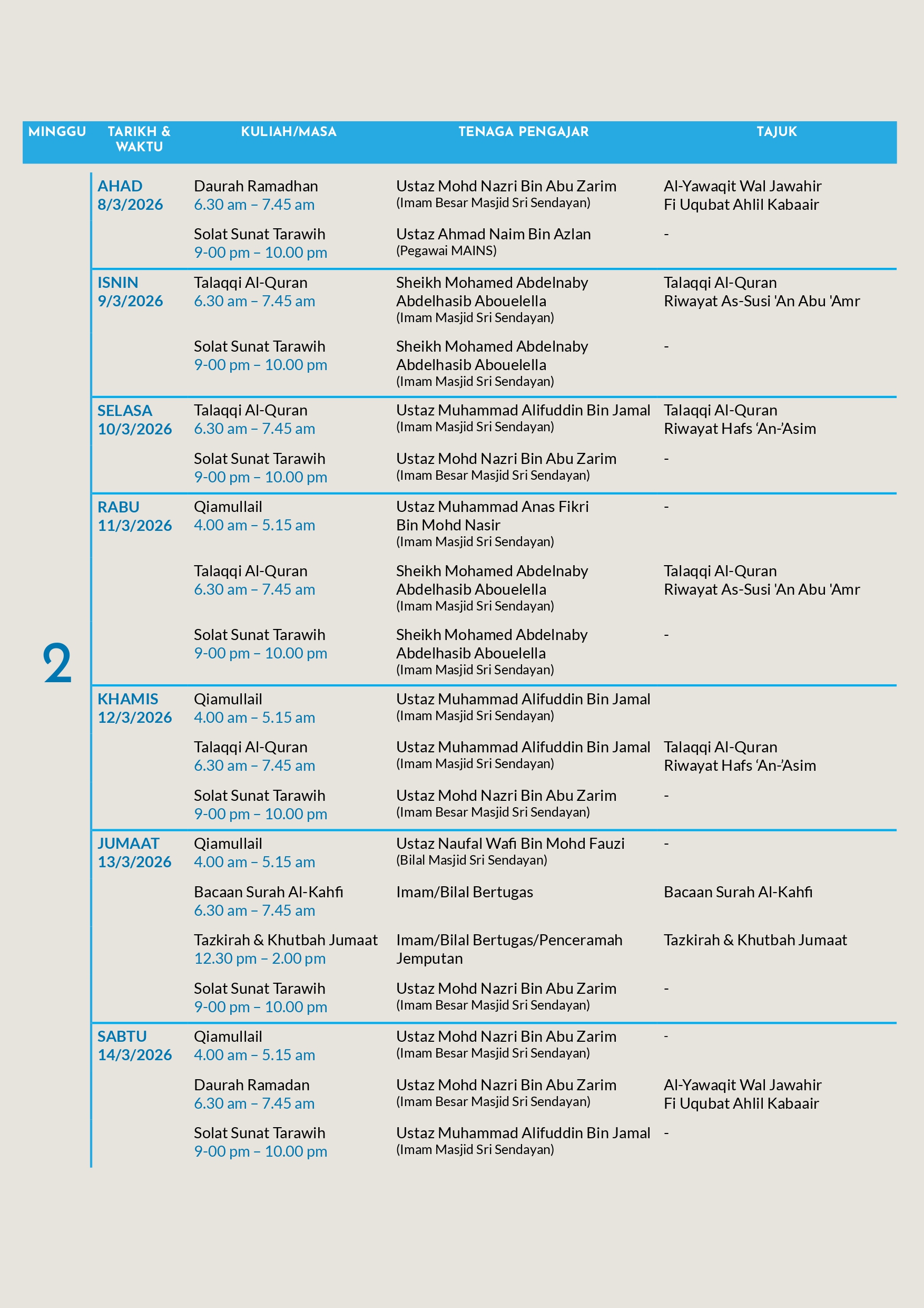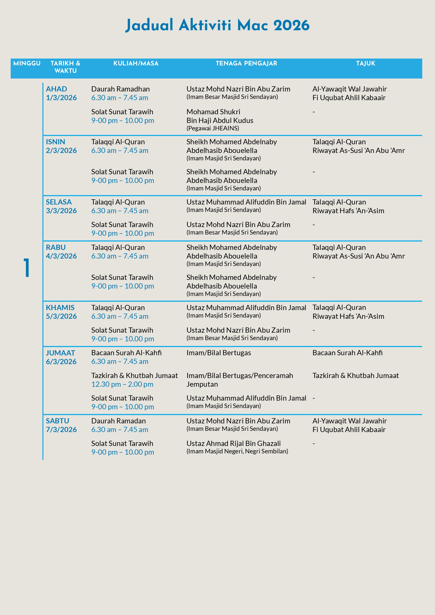 perihal aktiviti-aktiviti yang dianjurkan oleh Masjid Sri Sendayan